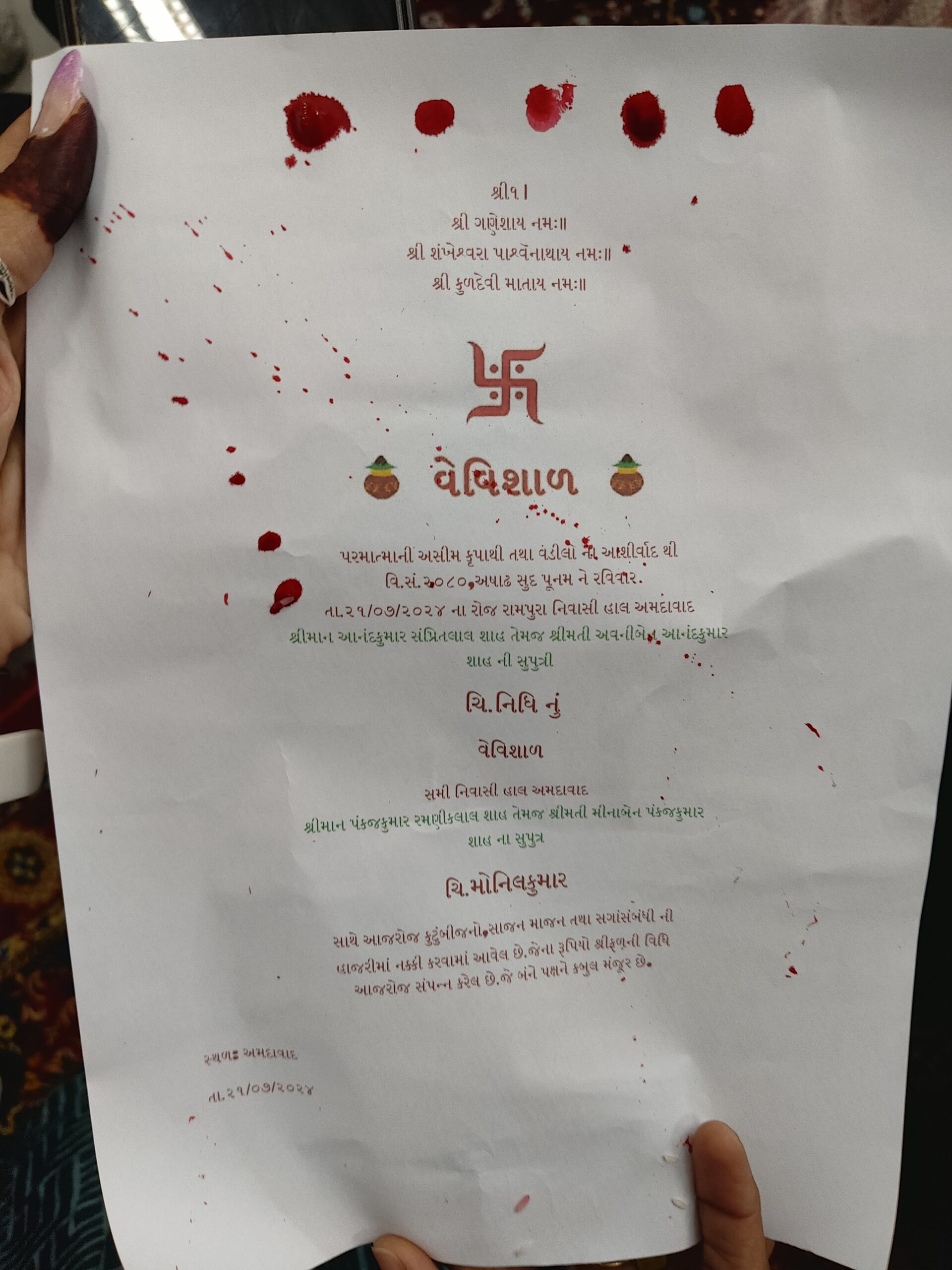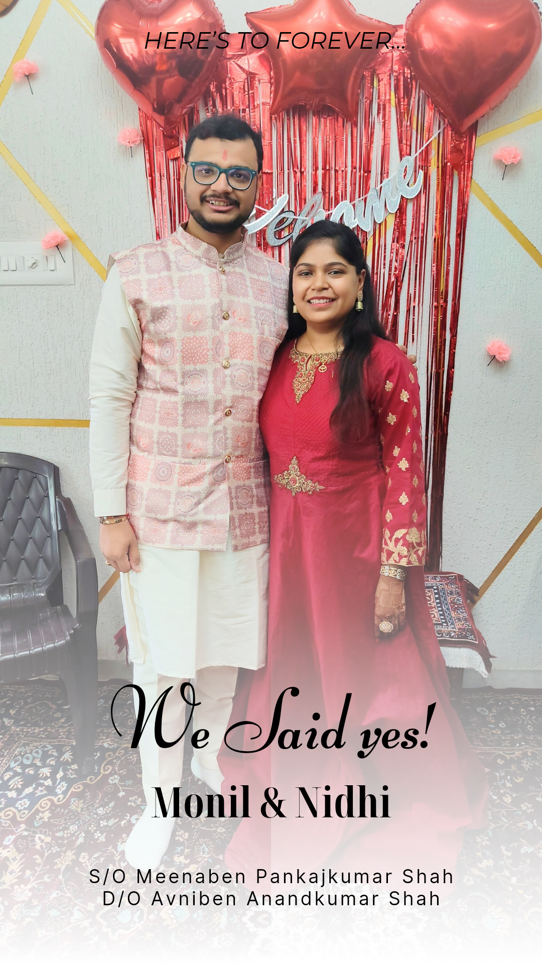 With great joy and excitement, the Pankajkumar Ramanlal Shah Family and Anandbhai Sampritlal Shah Family came together to celebrate Monil & Nidhiโs Gol-Dhana ceremony.